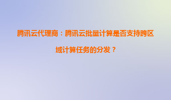 2025-09-16腾讯云批量计算:高效支持跨区域任务分发的云端利器 跨区域计算任务分发的核心需求 在全球化业务场景中,企业常面临数据分布广泛、计算资源分散的挑战。跨区域计算任务分发能力成为现代云计算平台的关...
