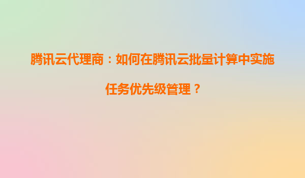 腾讯云代理商指南:如何在腾讯云批量计算中高效实施任务优先级管理 一、腾讯云批量计算的核心优势 腾讯云批量计算(BatchCompute)是为大规模并行计算场景设计的全托管服务,其核心优势包括: ...