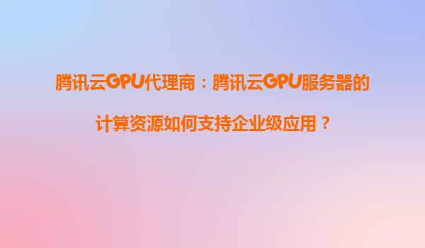 2025-09-16腾讯云GPU代理商:腾讯云GPU服务器的计算资源如何支持企业级应用? 引言 在数字化转型的浪潮中,企业对计算资源的需求日益增长,尤其是高性能计算(HPC)、人工智能(AI...