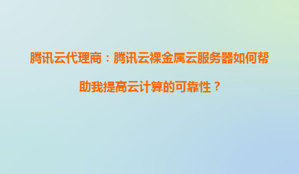2025-09-06腾讯云代理商:腾讯云裸金属云服务器如何帮助提升云计算可靠性? 引言 在数字化转型的浪潮中,企业对云计算的可靠性和性能要求越来越高。腾讯云作为国内领先的...