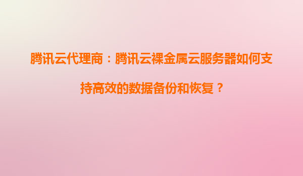 2025-09-06腾讯云代理商:腾讯云裸金属云服务器如何支持高效的数据备份和恢复? 一、腾讯云裸金属云服务器的核心优势 腾讯云裸金属云服务器(BareMetalCloudServer)结合了物理机的性能和虚拟机的灵活性,尤其适合...