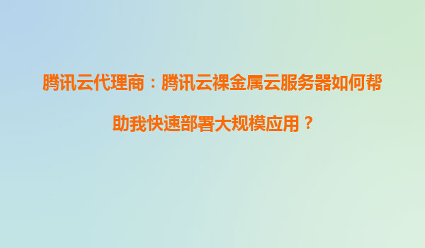 2025-09-06腾讯云代理商:腾讯云裸金属云服务器如何帮助我快速部署大规模应用? 一、裸金属服务器的核心价值与适用场景 腾讯云裸金属服务器(BMaaS)是一种兼具物理机性能与云服务弹性的基础设施,专为需要直接访问底层硬件资...