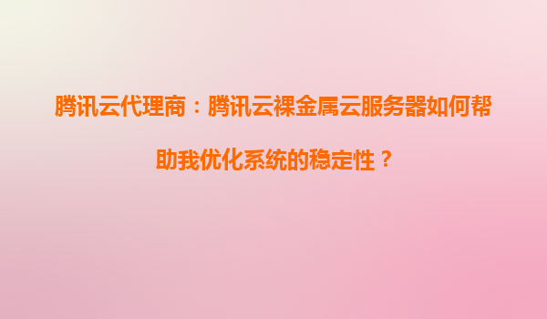 2025-09-04腾讯云代理商:腾讯云裸金属云服务器如何帮助我优化系统的稳定性? 一、什么是腾讯云裸金属云服务器? 腾讯云裸金属服务器(BareMetalServer,BMS)是一种结合了物理机高性能与云服务弹性的计算类产品,提...