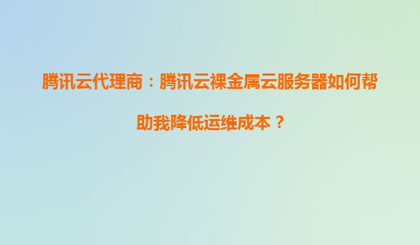 2025-09-04腾讯云代理商:腾讯云裸金属云服务器如何帮助我降低运维成本? 一、裸金属云服务器的核心优势 腾讯云裸金属云服务器(BareMetalServer)结合了物理机的性能优势与云计算的灵活特性,为用户提供...