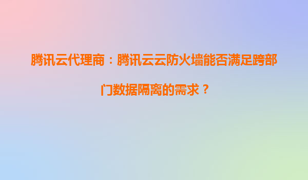 2025-08-27腾讯云代理商:腾讯云云防火墙能否满足跨部门数据隔离的需求? 引言 在数字化转型的浪潮中,企业数据安全成为重中之重。尤其是对于大型企业或机构而言,跨部门...