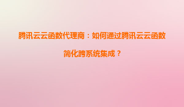 2025-08-25腾讯云云函数代理商:如何通过腾讯云云函数简化跨系统集成? 引言 在数字化转型的浪潮中,企业常常面临跨系统集成的挑战。传统的集成方式往往需要复杂的开发工作和高昂的维护成本。...