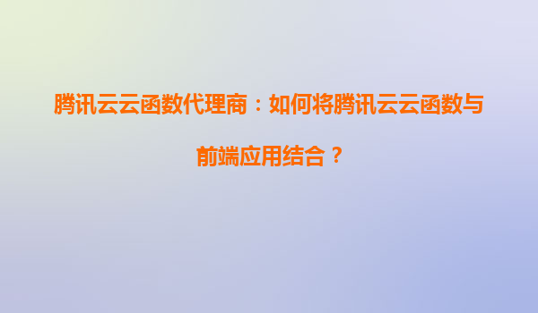 2025-08-24腾讯云云函数代理商:如何将腾讯云云函数与前端应用结合? 一、腾讯云云函数的核心价值 腾讯云云函数(SCF)是腾讯云提供的无服务器(Serverless)计算服务,开发者无需管理服务器即可运...