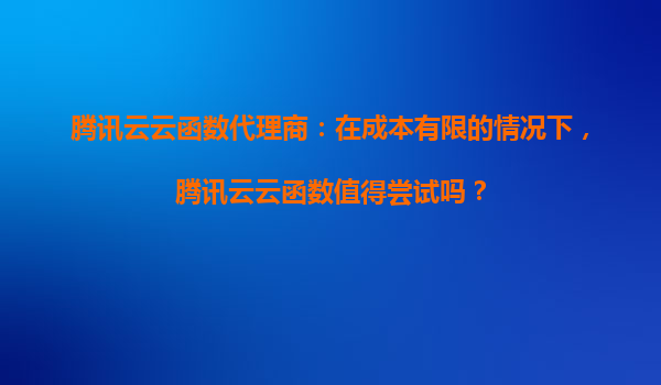 腾讯云云函数代理商:在成本有限的情况下,腾讯云云函数值得尝试吗? 一、腾讯云云函数的核心优势 腾讯云云函数(SCF)作为无服务器计算服务,凭借以下特点成为中小企业及开发者的热门选...