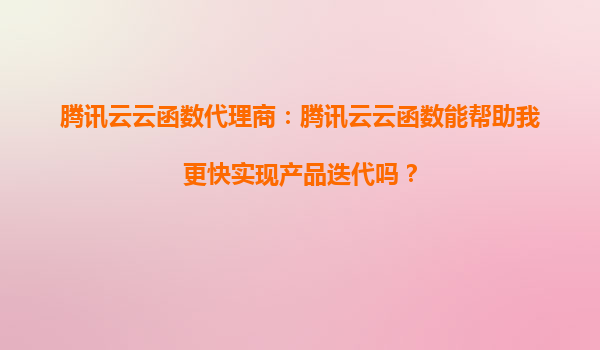2025-08-24腾讯云云函数代理商:腾讯云云函数能帮助我更快实现产品迭代吗? 在当今快速发展的互联网时代,企业需要不断优化和迭代产品以满足用户需求。而腾讯云云函数(ServerlessCloudFunction,SCF)作为一种无服务器...