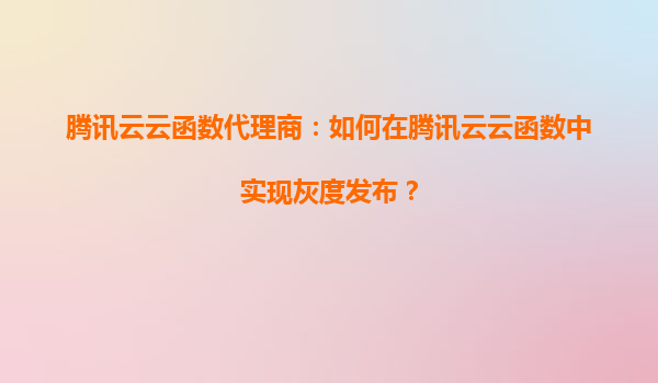 2025-08-24腾讯云云函数代理商:如何在腾讯云云函数中实现灰度发布? 一、灰度发布的核心价值 灰度发布(GrayRelease)是一种渐进式部署策略,允许开发者将新版本功能逐...