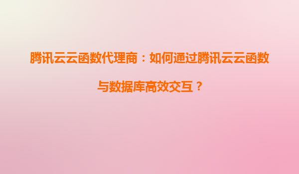 2025-08-24腾讯云云函数代理商:如何通过腾讯云云函数与数据库高效交互? 一、腾讯云云函数的核心优势 腾讯云云函数(SCF)作为无服务器计算服务,为开发者提供了免运维、弹性伸缩、按需付费的云端执行环境。其毫秒级启动...