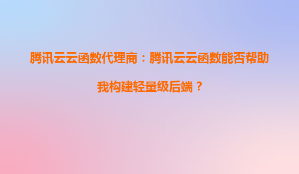 2025-08-24腾讯云云函数代理商:腾讯云云函数能否帮助我构建轻量级后端? 引言 在当今快速发展的互联网时代,企业和开发者越来越倾向于使用轻量级、高可用的后端服务来支...
