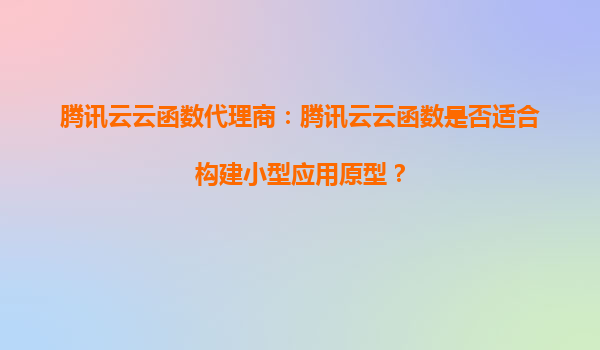 腾讯云云函数代理商:腾讯云云函数是否适合构建小型应用原型? 一、腾讯云云函数的核心优势 腾讯云云函数(SCF)作为无服务器计算服务,具备以下核心优势,使其成为构建小型应用原型的理想选择: ...