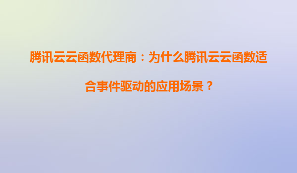 2025-08-22腾讯云云函数代理商:为什么腾讯云云函数适合事件驱动的应用场景? 引言 随着云计算技术的快速发展,Serverless架构逐渐成为企业构建现代化应用的首选方案。腾...