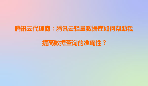 2025-08-22腾讯云代理商:腾讯云轻量数据库如何帮助您提高数据查询的准确性? 引言 在大数据时代,数据查询的准确性与效率直接影响企业的运营决策和用户体验。腾讯云轻量数据库(Te...