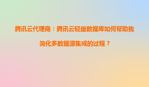 2025-08-22腾讯云代理商:腾讯云轻量数据库如何助力简化多数据源集成 一、多数据源集成的挑战与需求 在数字化转型浪潮中,企业常面临多数据源(如MySQL、MongoDB、Redis等)分散管理的问题: ...