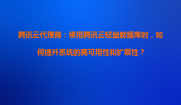 2025-08-22腾讯云代理商:使用腾讯云轻量数据库时,如何提升系统的高可用性和扩展性? 一、腾讯云轻量数据库的核心优势概述 腾讯云轻量数据库(TencentDBLight)是基于云原生架构设计的关系型数据库服务,...