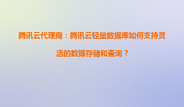 2025-08-22腾讯云代理商:腾讯云轻量数据库如何支持灵活的数据存储和查询? 一、轻量数据库的定位与核心优势 腾讯云轻量数据库(TencentDBLight)是面向中小企业和开发者...