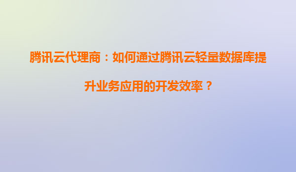 2025-08-22腾讯云代理商:如何通过腾讯云轻量数据库提升业务应用的开发效率? 在当今数字化转型的浪潮中,数据库作为业务应用的核心基础设施,对开发效率和运维管理提出了更高的要求。腾讯云轻量数据库(TencentDBLight...