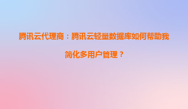 2025-08-20腾讯云代理商:腾讯云轻量数据库如何帮助我简化多用户管理? 一、多用户管理的挑战与需求 在互联网时代,无论是中小企业还是个人开发者,都需要面对多用户协作的数据管理场景。传统的数据库...