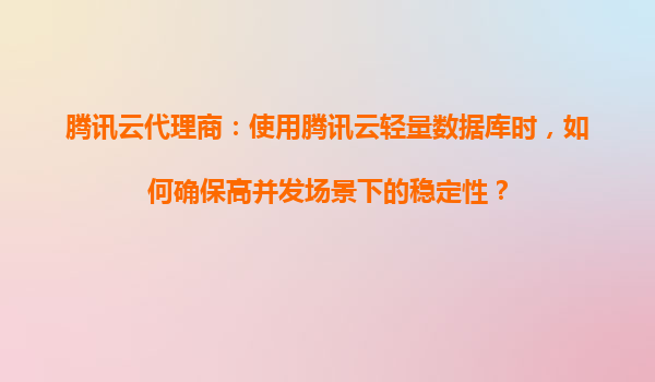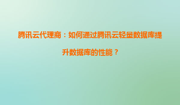 2025-08-20腾讯云代理商:如何通过腾讯云轻量数据库提升数据库的性能? 一、腾讯云轻量数据库的核心优势 作为腾讯云代理商,理解腾讯云轻量数据库(TencentDBLight)的核心优势是帮助客户提升性能...