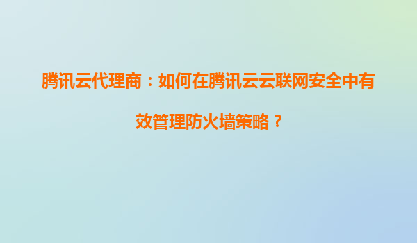 腾讯云代理商:如何在腾讯云云联网安全中有效管理防火墙策略? 一、云联网与防火墙策略的核心作用 云联网(CloudConnectNetwork,CCN)是腾讯云提供的多地域网络互通服务,而防火墙策略则是保障云上业务...