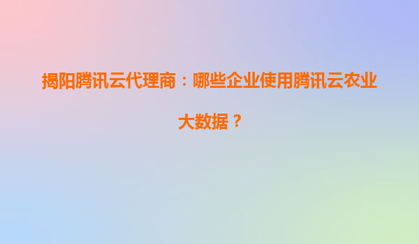 揭阳腾讯云代理商:哪些企业使用腾讯云农业大数据? 腾讯云在农业大数据领域的应用 随着数字化时代的到来,农业也逐渐走向智能化。腾讯云作为国内领先的云计算服务提供商,凭借其强...