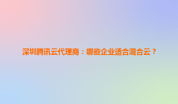2025-07-14深圳腾讯云代理商:哪些企业适合混合云? 混合云已成为企业数字化转型的热门选择,它将公有云的弹性扩展与私有云的安全性相结合。作为腾讯云的官方代理商,我们深入分析哪些企业更适合混合云架构,并结合腾讯云...