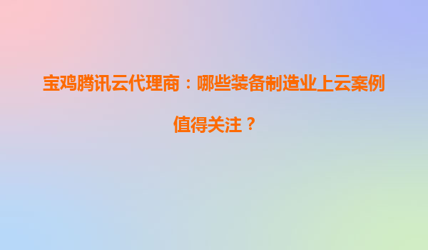 2025-07-05宝鸡腾讯云代理商:哪些装备制造业上云案例值得关注? 随着数字化转型的加速,装备制造业作为国民经济的重要支柱,正逐步通过云计算技术实现智能化升级。腾讯云凭借其强大的技术实力和丰富的行业经验,为装备制...