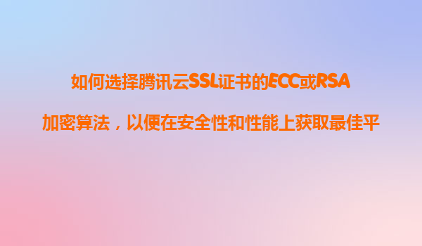 2025-11-08如何选择腾讯云SSL证书的ECC或RSA加密算法:安全性与性能的最佳平衡 一、ECC与RSA加密算法的核心差异 腾讯云SSL证书支持的ECC(椭圆曲线加密)和RSA(非对称加密)是两种主流算法,其差异直接影响安全性和...