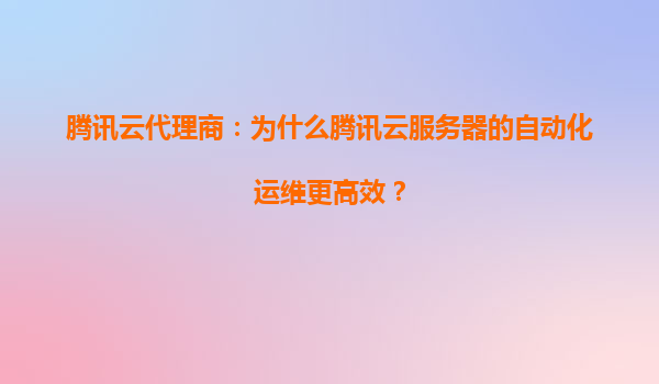 2025-06-16腾讯云代理商解读:为什么腾讯云服务器的自动化运维更高效? 一、自动化运维的行业变革 在数字化转型浪潮中,企业服务器运维面临响应速度慢、人为错误多、资源调配滞后等痛点。腾讯云通...