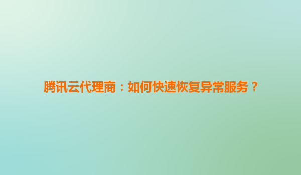 腾讯云代理商指南:如何快速恢复异常服务的实战策略 引言:云服务时代的业务连续性挑战 在数字化转型加速的今天,企业服务中断每小时可造成数十万元损失。作为腾讯云代理商,我们深知快...