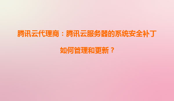 腾讯云代理商:腾讯云服务器的系统安全补丁如何管理和更新? 一、腾讯云在系统安全补丁管理上的核心优势 腾讯云作为国内领先的云服务提供商,在服务器系统安全补丁管理方面具备以下显著优势: ...
