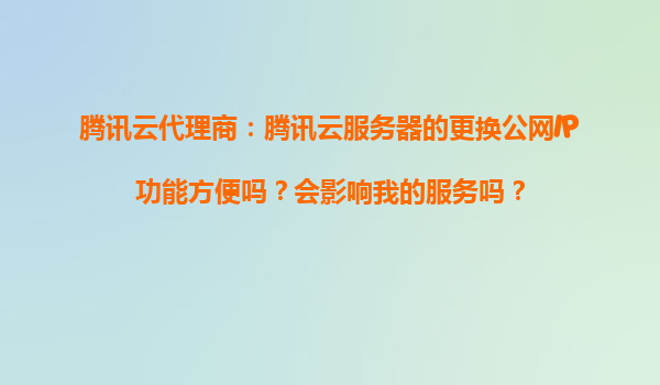 2025-11-03腾讯云代理商:腾讯云服务器的更换公网IP功能方便吗?会影响我的服务吗? 引言 在云计算时代,灵活高效的运维能力是企业上云的核心需求之一。作为国内领先的云服务提供...