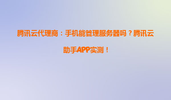 腾讯云代理商:手机能管理服务器吗?腾讯云助手APP实测! 一、腾讯云的核心优势 作为国内领先的云计算服务商,腾讯云凭借以下能力构建企业数字化转型基石: 超大规模算力集群:覆盖全球27...