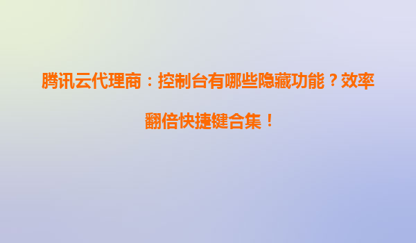 2025-05-12腾讯云控制台隐藏功能与效率翻倍秘籍:代理商必备指南 一、引言:让控制台成为你的效率引擎 作为国内领先的云计算服务商,腾讯云始终致力于为开发者与企业提供高效稳定的云...