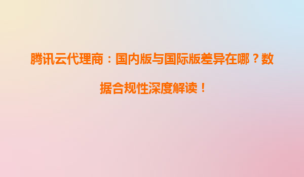 2025-05-10腾讯云代理商:国内版与国际版差异解析与数据合规性深度解读 一、引言:企业上云需关注版本选择与合规性 随着全球数字化进程加速,腾讯云作为领先的云服务商,通过国内版(ChinaEdi...