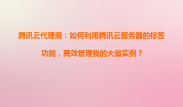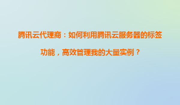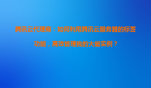 2025-11-02腾讯云代理商:如何利用腾讯云服务器的标签功能,高效管理我的大量实例? 一、腾讯云标签功能的优势与核心价值 腾讯云标签(Tag)功能是为企业级用户设计的资源分类工具,尤其适合代理商业场景下大规模实例的管理...