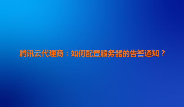腾讯云代理商如何高效配置服务器告警通知 一、告警通知的重要性与腾讯云的价值 在数字化转型的背景下,服务器稳定性直接关系到业务连续性。腾讯云为代理商及企业用户提供完善的云监控体系,...