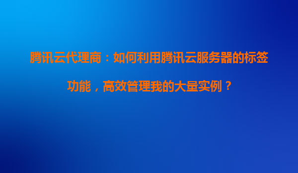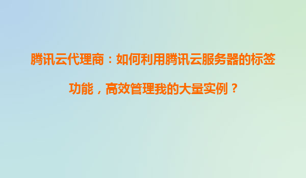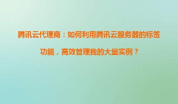 腾讯云代理商:如何利用腾讯云服务器的标签功能,高效管理我的大量实例? 一、腾讯云标签功能的优势与核心价值 腾讯云标签(Tag)功能是为企业级用户设计的资源分类工具,尤其适合代理商业场景下大规模实例的管理...