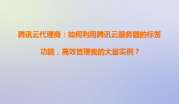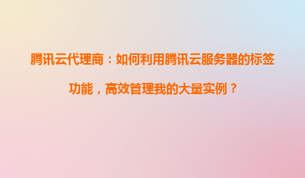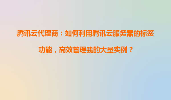 腾讯云代理商:如何利用腾讯云服务器的标签功能,高效管理我的大量实例? 一、腾讯云标签功能的优势与核心价值 腾讯云标签(Tag)功能是为企业级用户设计的资源分类工具,尤其适合代理商业场景下大规模实例的管理...