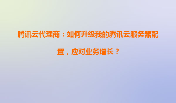 2025-11-01腾讯云代理商:如何升级我的腾讯云服务器配置,应对业务增长? 一、业务增长带来的服务器挑战 随着企业业务的快速发展,原有腾讯云服务器的配置可能无法满足需求,如出现性能瓶颈、响应延迟或资源不足等问题。及时...