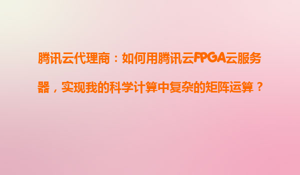2025-10-25腾讯云代理商指南:利用腾讯云FPGA云服务器加速科学计算中的复杂矩阵运算 一、科学计算中的矩阵运算挑战 在深度学习、气象模拟、量子化学等科学计算领域,大规模矩阵运算(如矩阵乘法、...