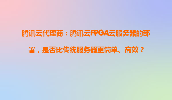腾讯云代理商:腾讯云FPGA云服务器的部署,是否比传统服务器更简单、高效? 引言 随着云计算技术的快速发展,企业上云已成为数字化转型的必然选择。而FPGA(现场可编程门阵列)作为一种高性能计算解决方案,...