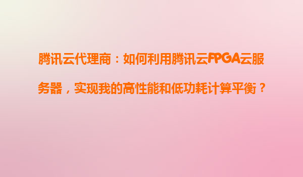 腾讯云代理商:如何利用腾讯云FPGA云服务器,实现高性能和低功耗计算平衡? 一、腾讯云FPGA云服务器的核心优势 腾讯云FPGA(现场可编程门阵列)云服务器是基于硬件加速的高性能计算服务,其核心优势包括: ...