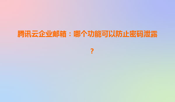 腾讯云企业邮箱如何构建密码安全防线