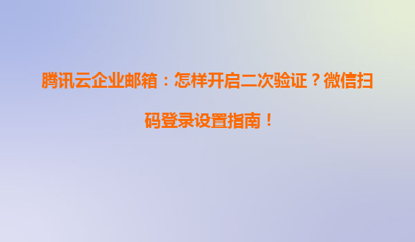 腾讯云企业邮箱:为何选择开启二次验证与微信扫码登录?