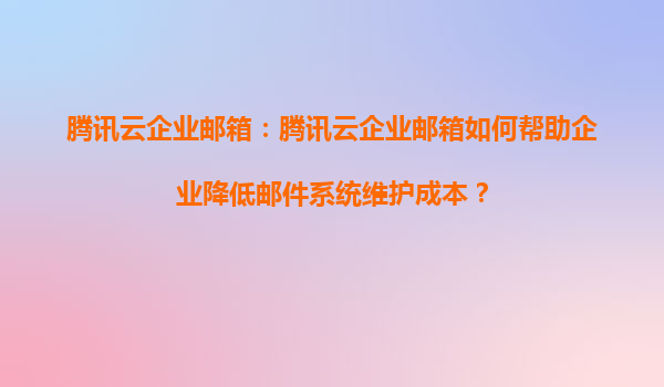 腾讯云企业邮箱:如何助力企业高效降低邮件系统维护成本?