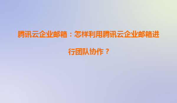腾讯云企业邮箱:怎样利用腾讯云企业邮箱进行团队协作?
