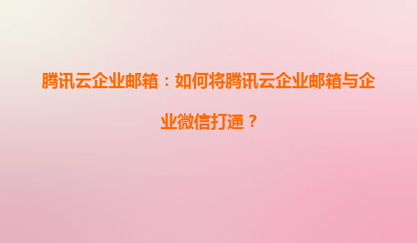 腾讯云企业邮箱与企业微信打通:实现高效协同办公